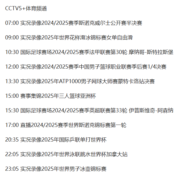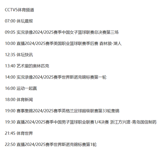 - 4 月 23 日晚间, CCTV5、CCTV5+ 体育直播盛